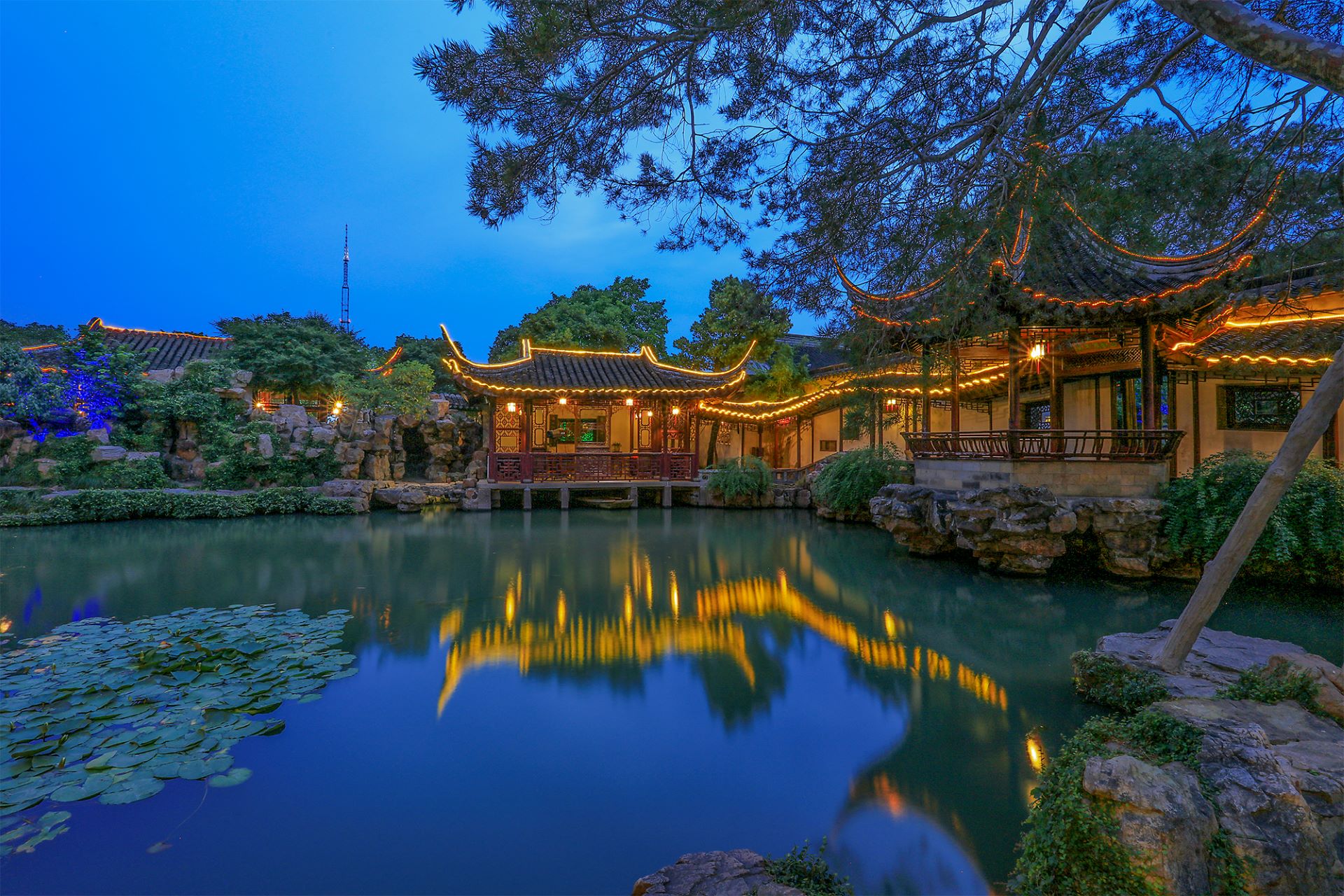 "晚上的网师园,柔美灯光、婆娑树影渲染出清幽雅致的文化氤氲,昆曲、评弹、古琴、江南丝竹、